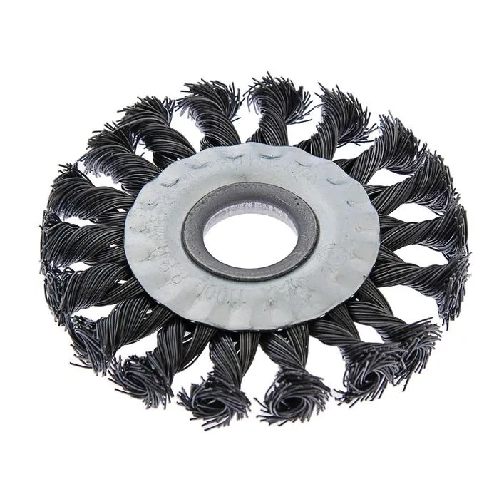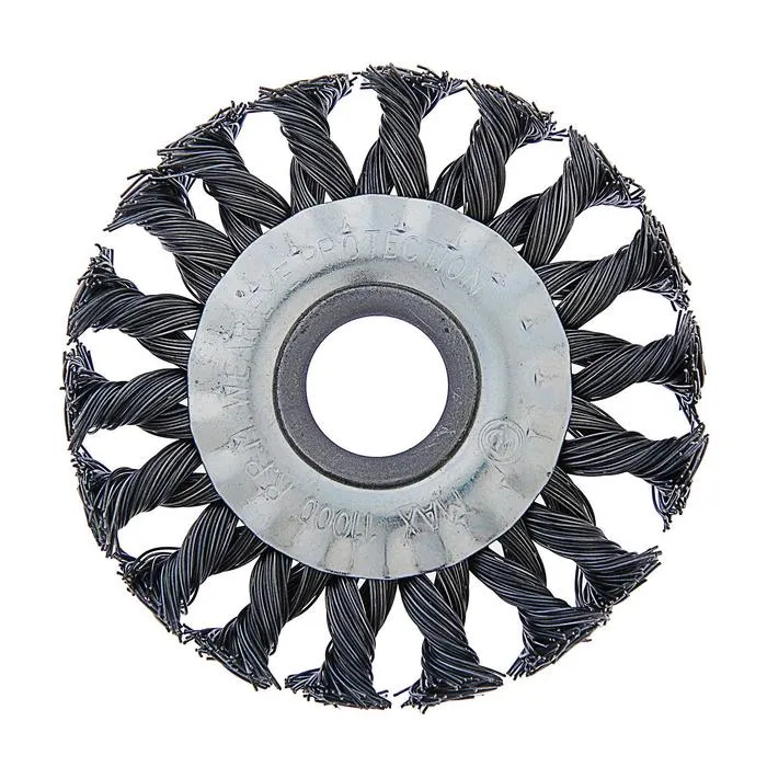 Плоская металлическая крученая щётка ТУНДРА предназначена для грубой зачистки поверхностей изделий из различных материалов, удаления ржавчины, грязи, зачистки сварных швов металлических поверхностей. Применяется совместно с угловой шлифовальной машиной, посадочное отверстие - 22,2 мм.