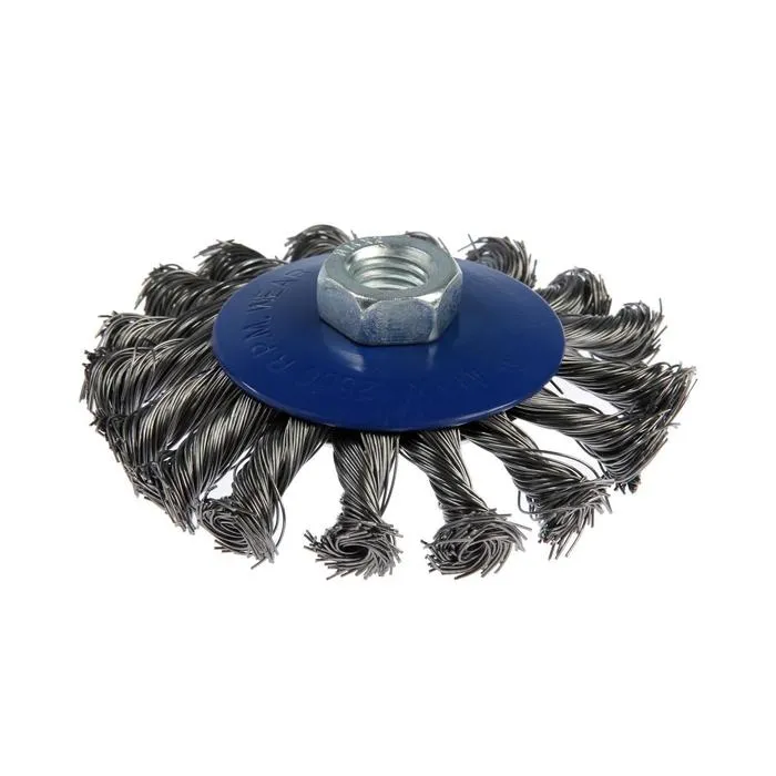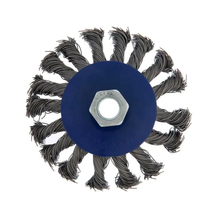 Металлическая кручёная щётка типа «тарелка» ТУНДРА предназначена для грубой зачистки изделий из различных материалов, удаления ржавчины и грязи с металлических поверхностей. Применяется совместно с угловой шлифовальной машиной, тип крепления - М14.