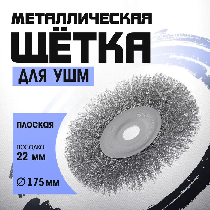 Щетка металлическая для УШМ ТУНДРА, плоская, посадка 22 мм, 175 мм — Характеристики
