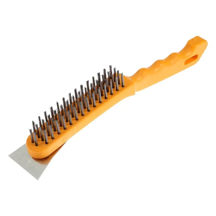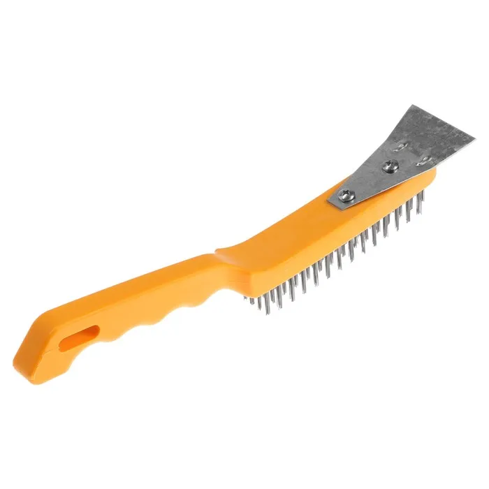 Щетка металлическая ручная ТУНДРА, со шпателем, пластиковая рукоятка, 4-рядная — Характеристики