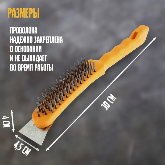 Щетка металлическая ручная ТУНДРА, со шпателем, пластиковая рукоятка, 5-рядная — Характеристики