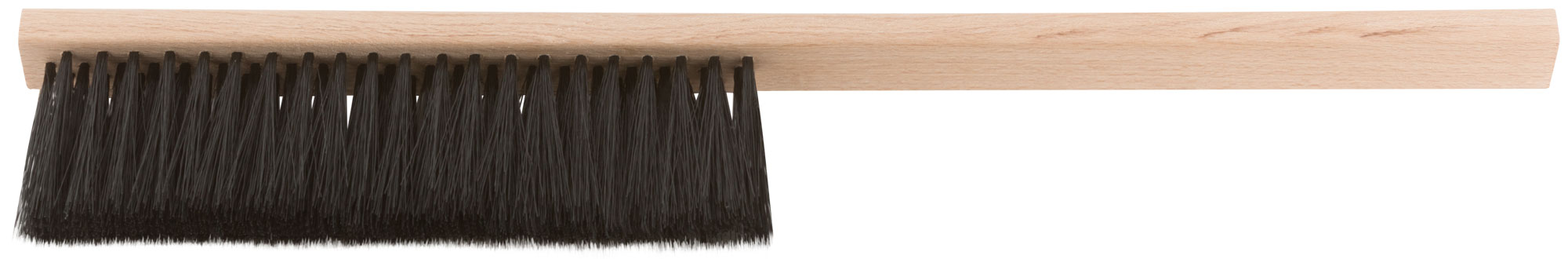 Щетка оснащена искусственной щетиной, что делает её долговечной и устойчивой к износу. Деревянная ручка выполнена из бука, обеспечивая прочность и комфорт в использовании. Легкий вес в 138 г позволяет работать с инструментом без лишней нагрузки.