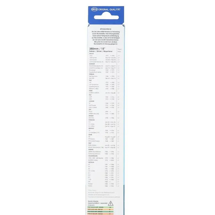 Щетка стеклоочистителя ALCA SUPER FLAT, 15"/ 380 мм бескаркасная — Характеристики