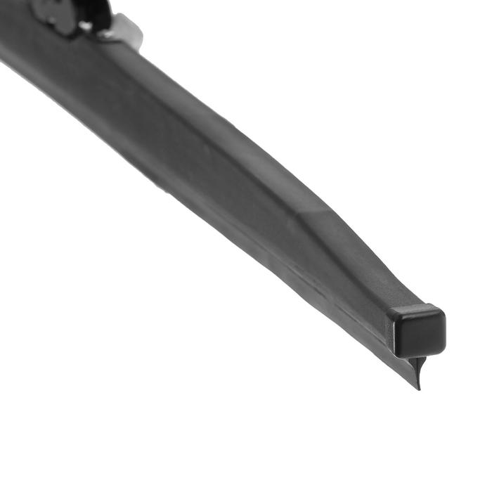 Гибридные щетки стеклоочистителя являются самыми современными и высокотехнологичными щетками представленными на рынке в настоящий момент. В них сочетаются оптимальная прижимная сила по всей поверхности вне зависимости от значения кривизны стекла и прекрасные аэродинамические характеристики. Структура гибридной щетки обеспечивает высоту сопоставимую с бескаркасной благодаря чему сочетаются внешний вид и практичность без потери качества. Универсальный адаптер обеспечит возможность установки на большинство (более 95%) российских и иностранных автомобилей с традиционными типами поводков.