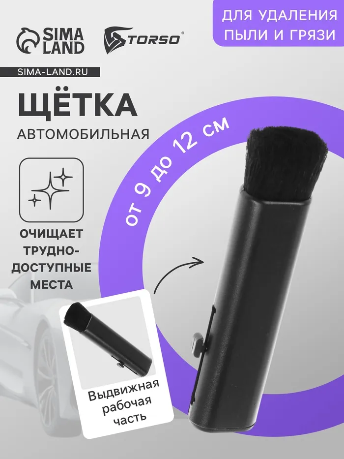 Щетка выдвижная TORSO для чистки труднодоступных мест, в салоне авто, 9-12 см, черный — Характеристики