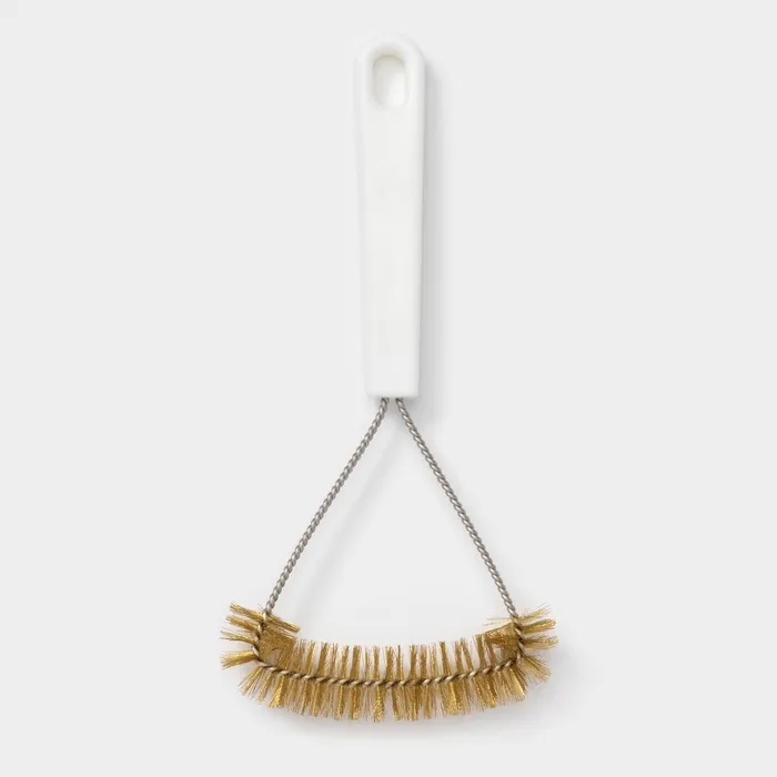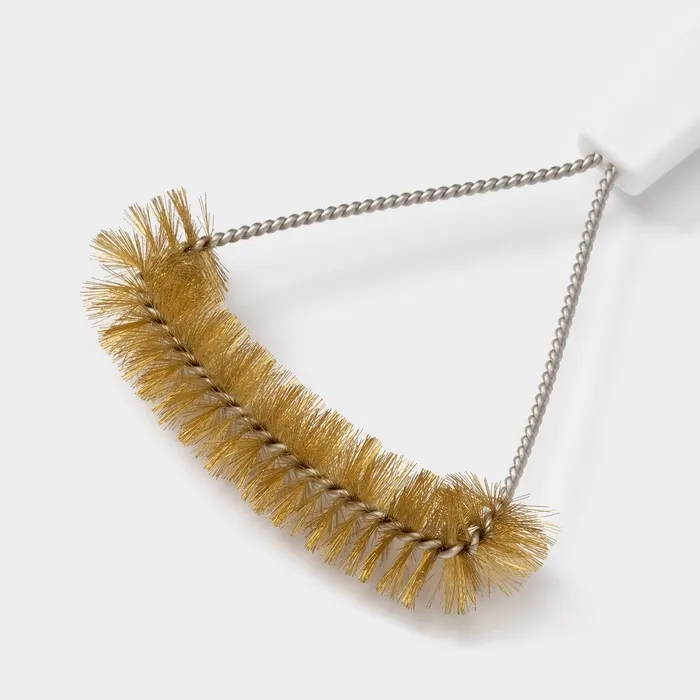 полукруглые вырезы по бокам для чистки круглых прутьев решётки;удобная петелька для эргономичного хранения;жёсткая щетина из нержавеющей стали, устойчивая к коррозии и не теряющая форму;выдерживает большие перепады температур;обеспечивает качественный уход без химических веществ, продлевая срок службы изделий;легко справляется с пригоревшим жиром в труднодоступных местах.