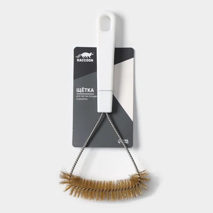 Щётка для чистки посуды и решёток-гриль Raccoon, металлическая щетина, 23.5×11 см, белая — Характеристики