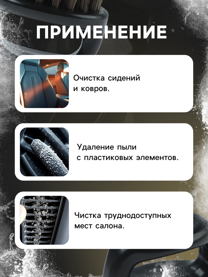 Щётка для чистки салона автомобиля — это универсальный инструмент, который поможет вам поддерживать чистоту и порядок внутри машины.