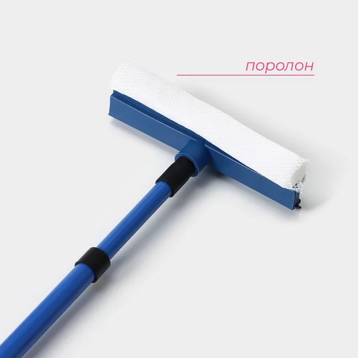Щётка для окон Доляна, телескопическая ручка 49(75) см, водосгон 20 см, насадка поролон 20 см, синяя — Характеристики