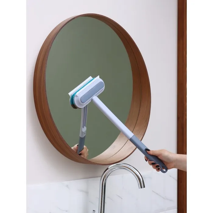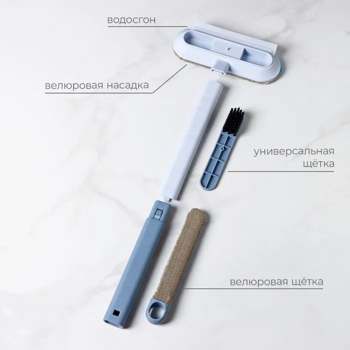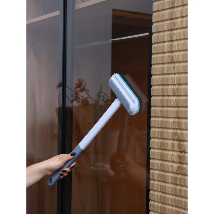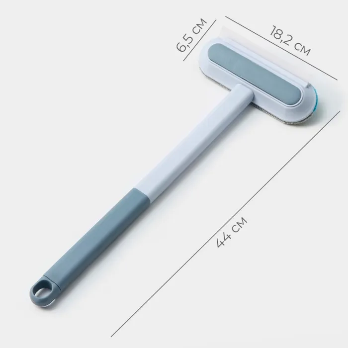 Основная щётка выполнена из велюра, поэтому вы сможете помыть окна без разводов и ворсинок. А чтобы убрать лишнюю жидкость и пену, на другой стороне щётки есть силиконовый водосгон.