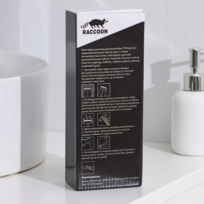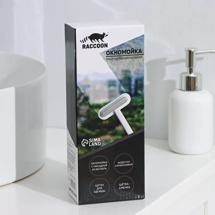 Многофункциональная окномойка Raccoon предназначена для мытья окон, москитных сеток, зеркальных и керамических поверхностей. Также с помощью данной щётки вы сможете без труда очистить от шерсти и волос одежду и мебель.