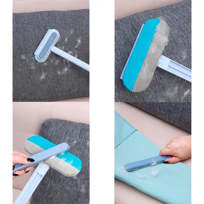 Оптимальный размер велюровой щётки делает её максимально эффективной для уборки шерсти и волос с мебели. А благодаря маленькой велюровой щёточке, которая находится внутри ручки, вы можете очистить основную щётку. Также она подойдёт для чистки одежды.