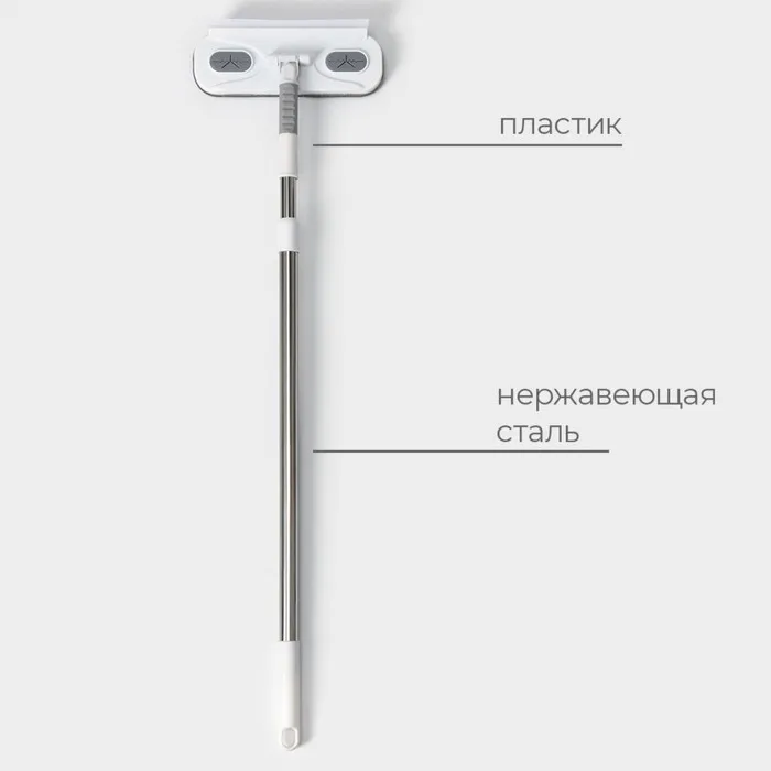 Щётка для окон Raccoon, телескопическая нержавеющая ручка 77(123) см, силиконовый сгон 22 см, велюровая насадка 22×7 см, цвет МИКС — Характеристики