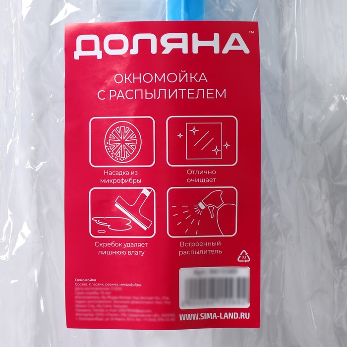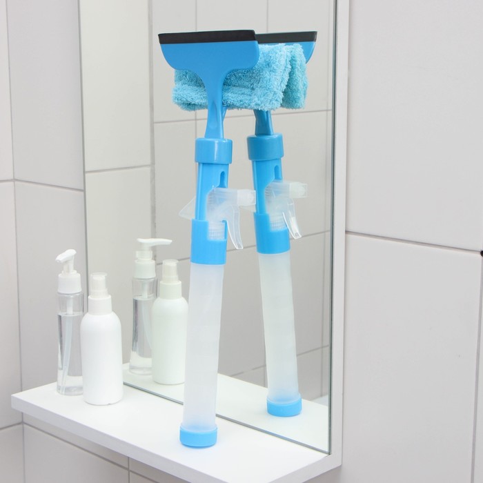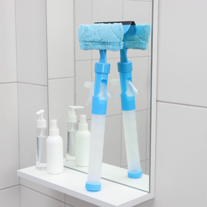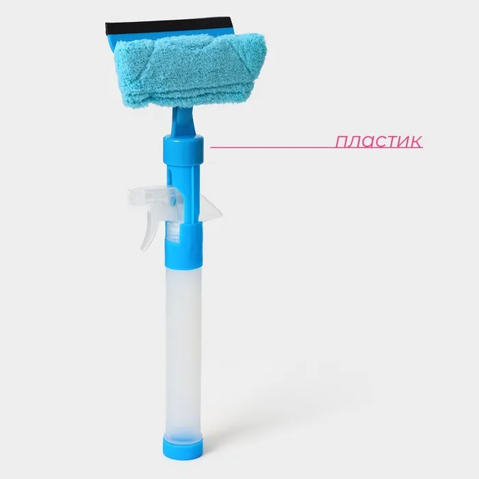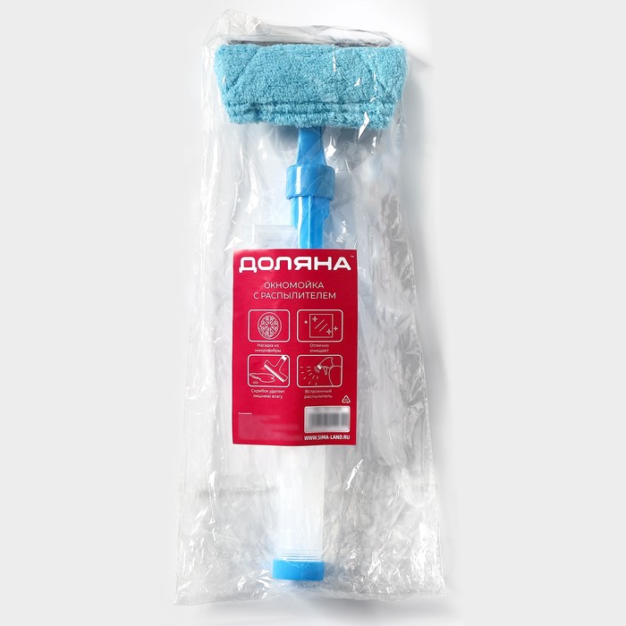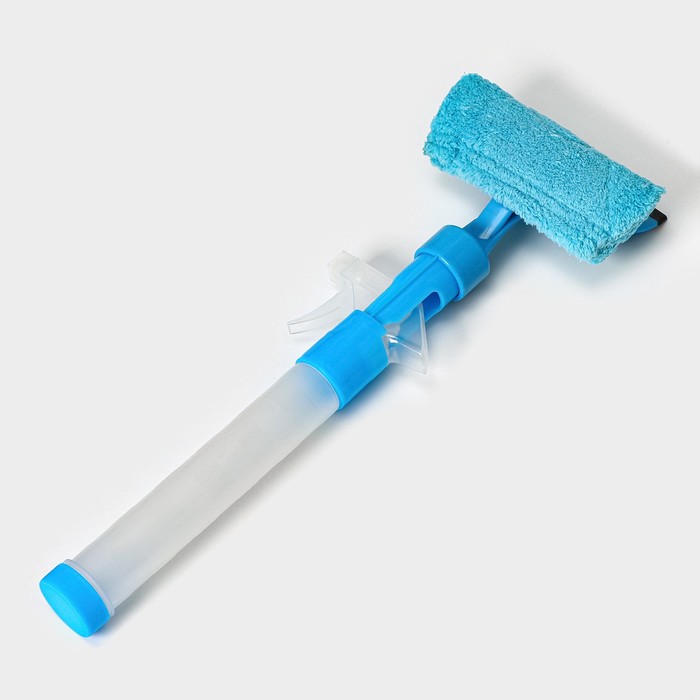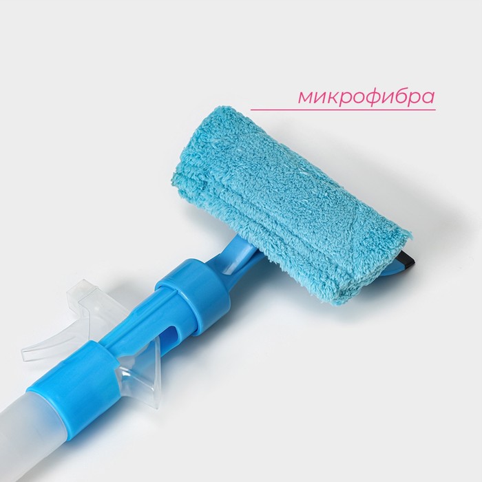 Щётка для окон с распылителем Доляна, длина 42 см, водосгон 14 см, насадка микрофибра 14×5 см, цвет голубой — Характеристики
