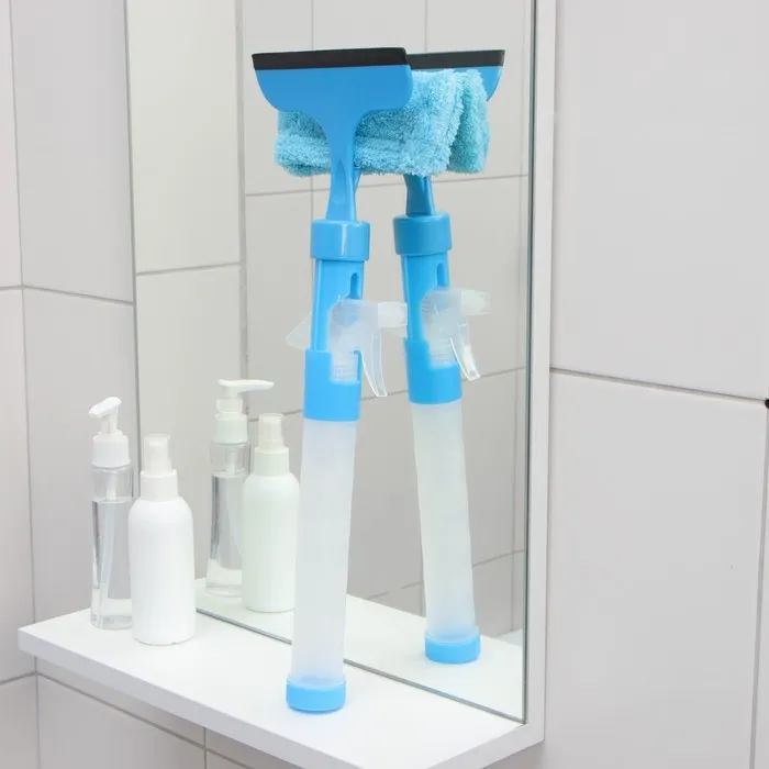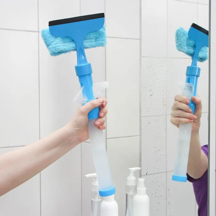 - В емкость распылителя Вы можете залить средство для мытья окон или обычную воду, а водосгон для окон удалит пыль и грязь со стекол.