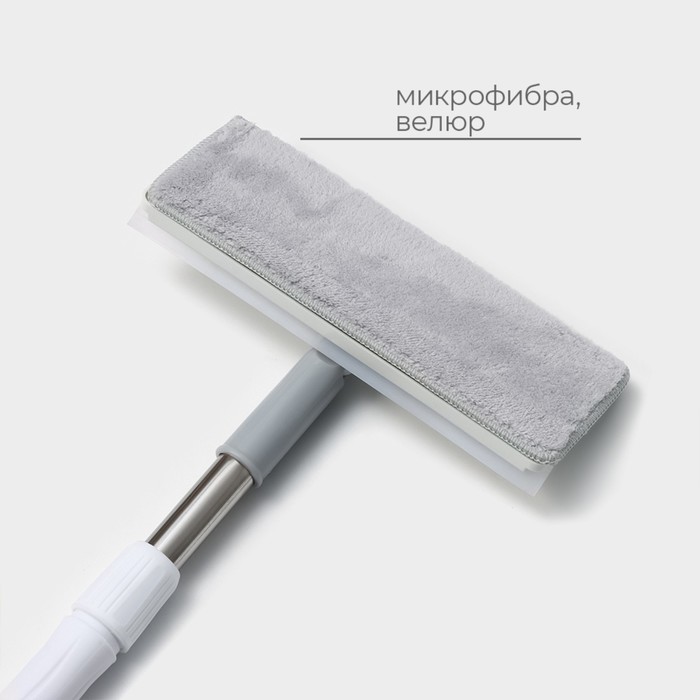 —Удобство и практичность: телескопическая ручка легко регулируется по длине, что делает процесс мытья окон комфортным и быстрым.