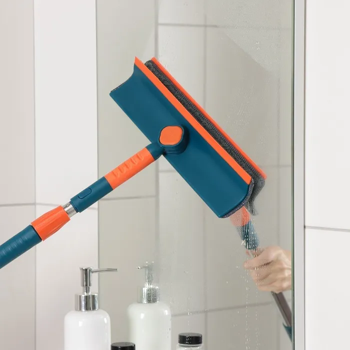 - Установите скребок в верхнем левом углу окна и, прижимая к стеклу, ведите швабру сверху вниз, сгоняя воду и грязь, до нижнего края рамы.