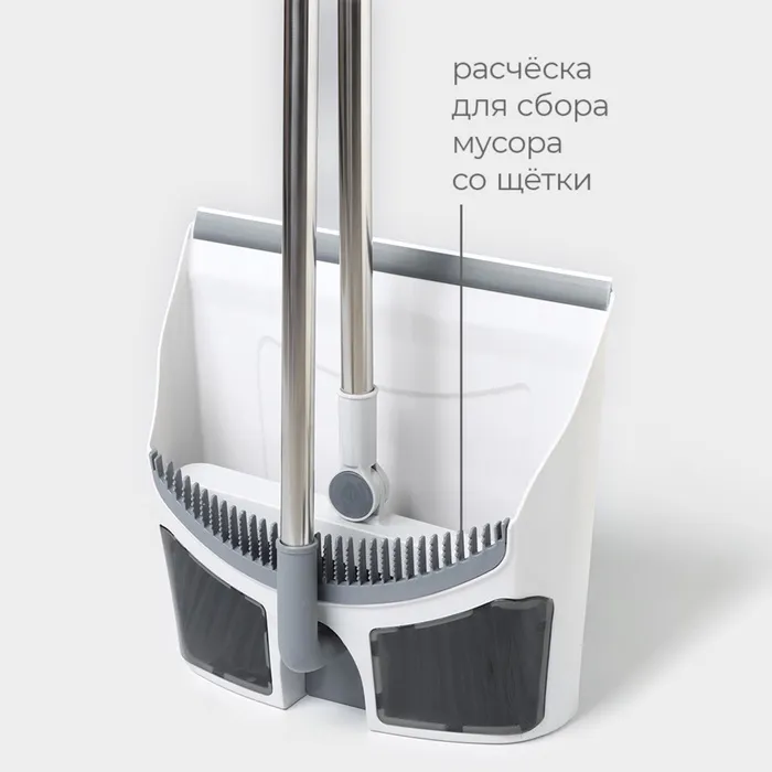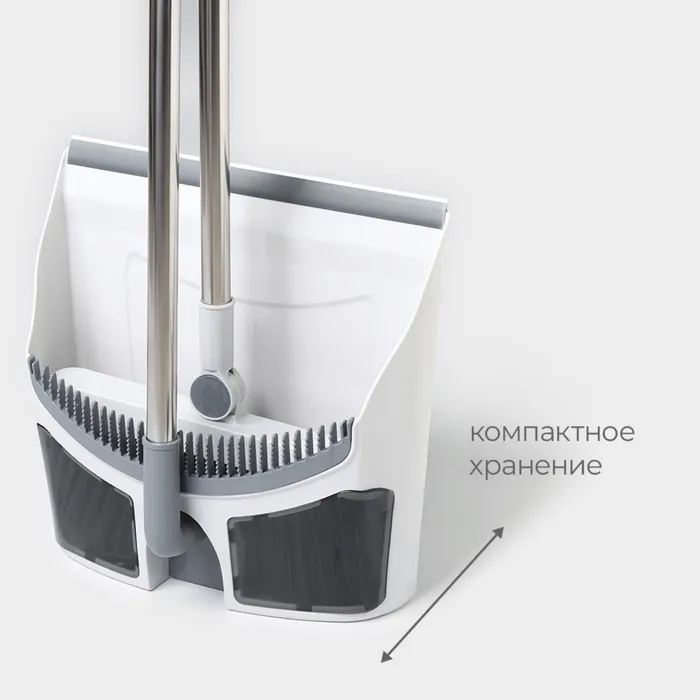 Щётка с размерами 23Г—94 см и совок 28Г—27Г—89 см выполнены в элегантном белом цвете, что позволяет им гармонично вписываться в любой интерьер. Длинные ручки (76,5 см) обеспечивают удобство использования, минимизируя необходимость наклоняться во время уборки, что особенно важно для сохранения здоровья спины.