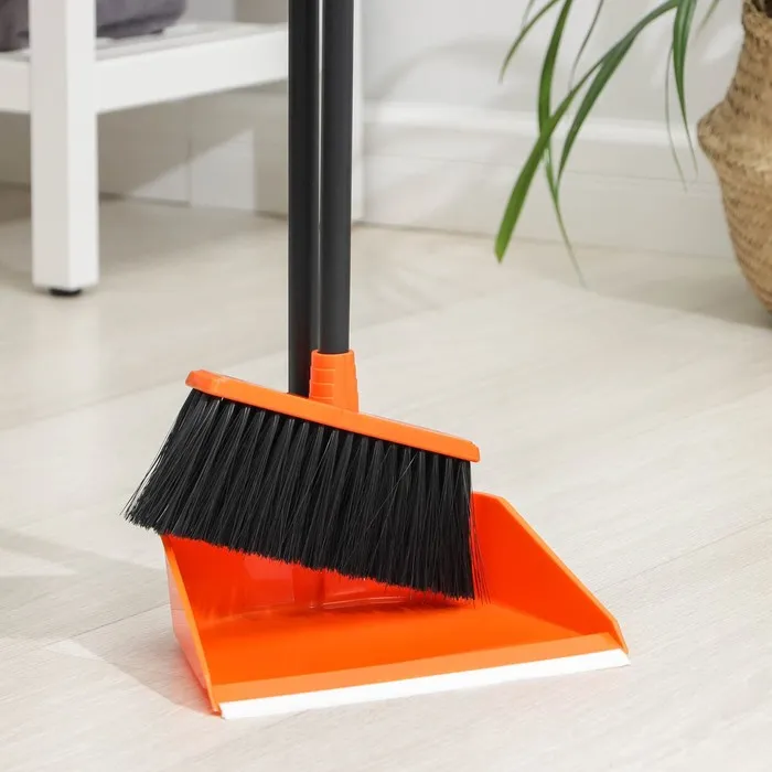 Щётка для пола с совком «Ленивка», 19,5×25×90 см, оранжевая