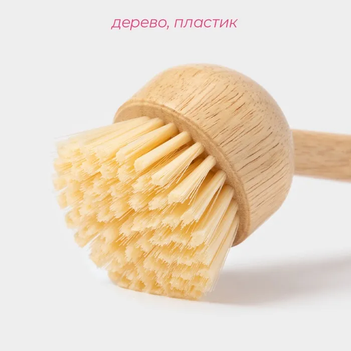 Щётка «Лотос» изготовлена из дерева и пластика, что гарантирует её долговечность и безопасность. Она эффективно удаляет жир, пригоревшую пищу и другие загрязнения, обеспечивая гигиеничность вашей посуды.