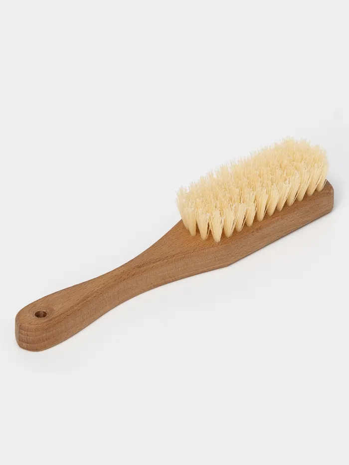 Необходимо приложить щётку к ткани под углом 45 градусов, и, аккуратно надавливая, провести вдоль поверхности.