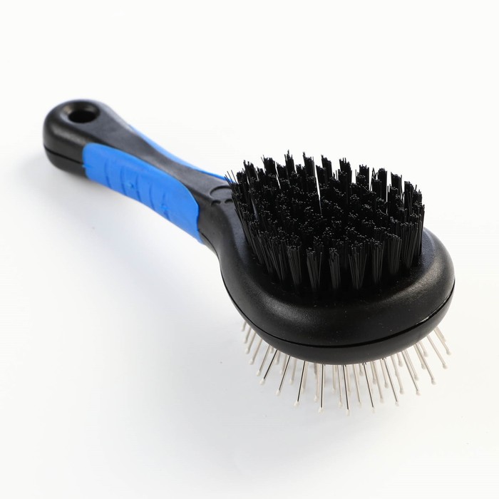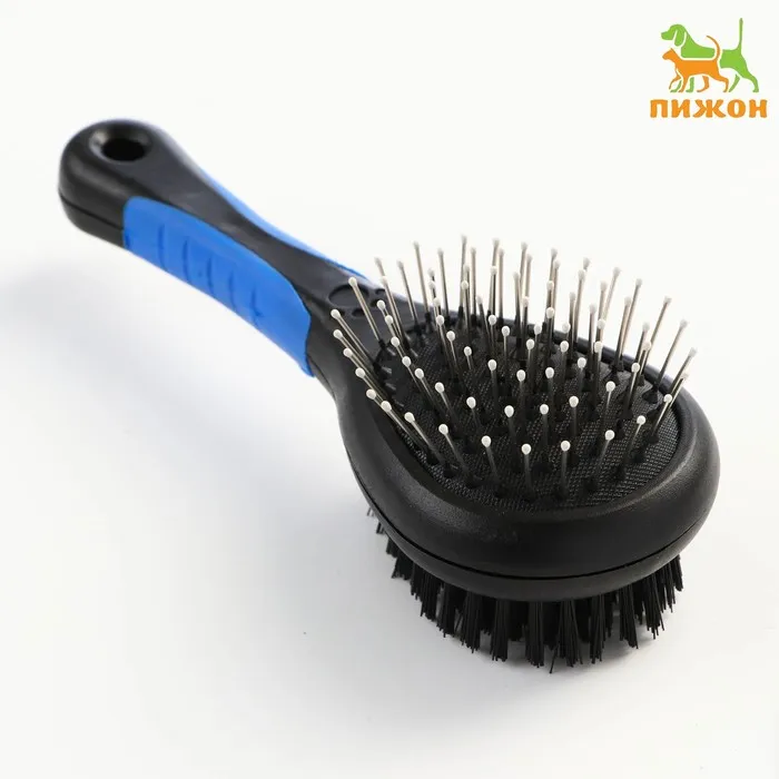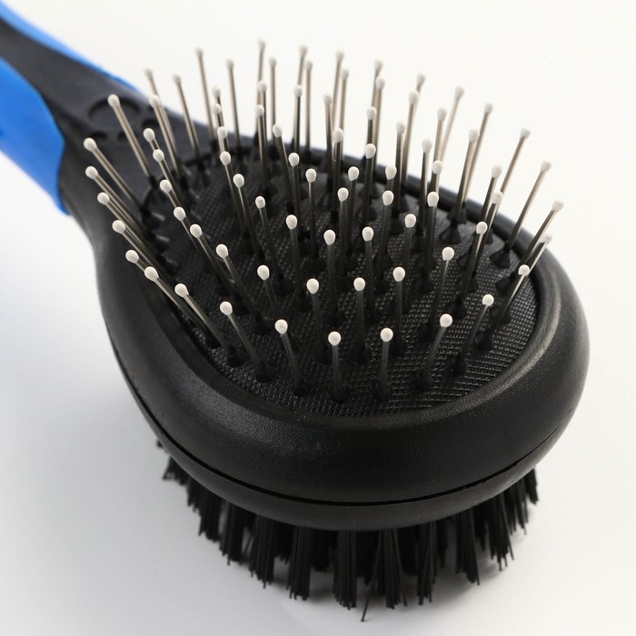 Щётка-расчёска двухсторонняя, 17,5 х 6,5 см, нескользящая ручка, чёрно-синяя