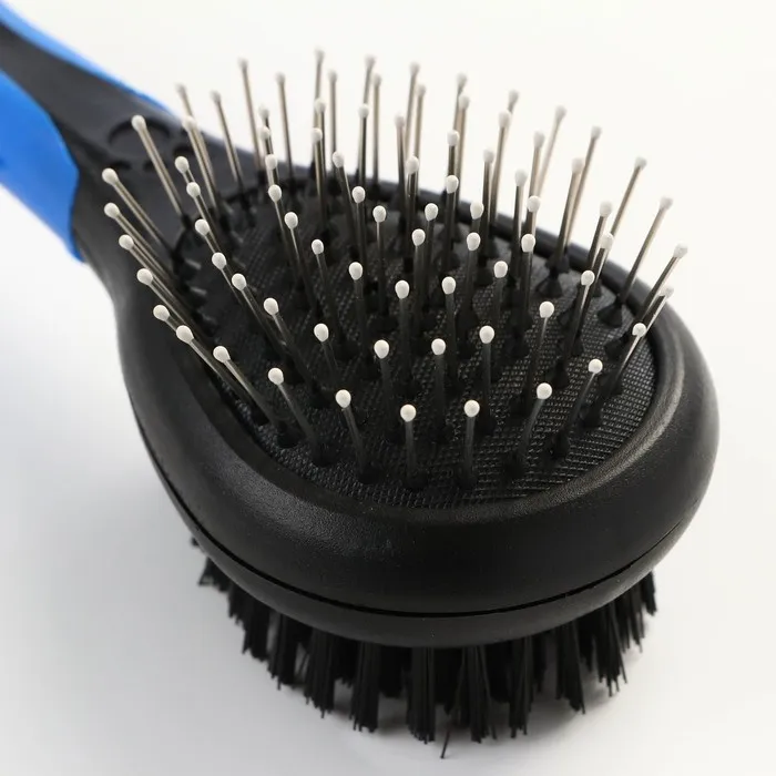 В дополнение к чистке щеткой для удаления узлов и загрязнений щетина из нержавеющей стали обеспечивает массаж, стимулирующий кожу, а также гарантирует легкое расчесывание волос и надлежащий периодический уход за вашим четвероногим другом.