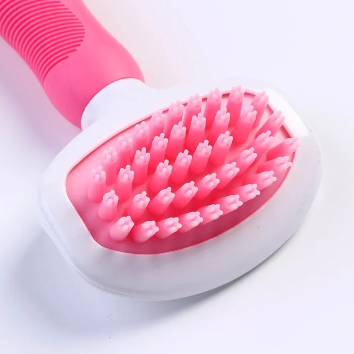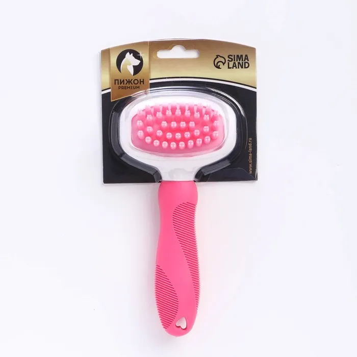 Щётка шерсти с удлиненными силиконовыми зубцами и массажным эффектом, 8 х 17, розовая