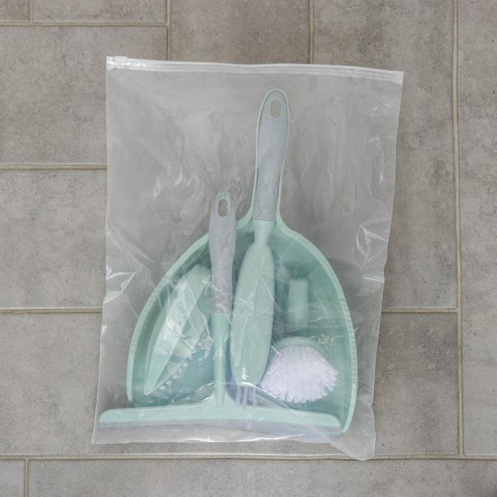 Хозяйственный комплект для уборки не занимает много места.Щетка для уборки предназначена для удаления загрязнений с различных поверхностей. Ее щетинки средней жесткости изготовлены из прочного материала, что позволяет легко и быстро осуществлять чистку.Пластиковый совок прочный, устойчивый к сколам и трещинам, поэтому прослужит вам длительное время.Водосгон может использоваться для мытья стекол, зеркал, перегородок, дверей, а также для очистки ванных кабин, пола и кухонных поверхностей.Такой хозяйственный набор существенно упростит процесс уборки дома.