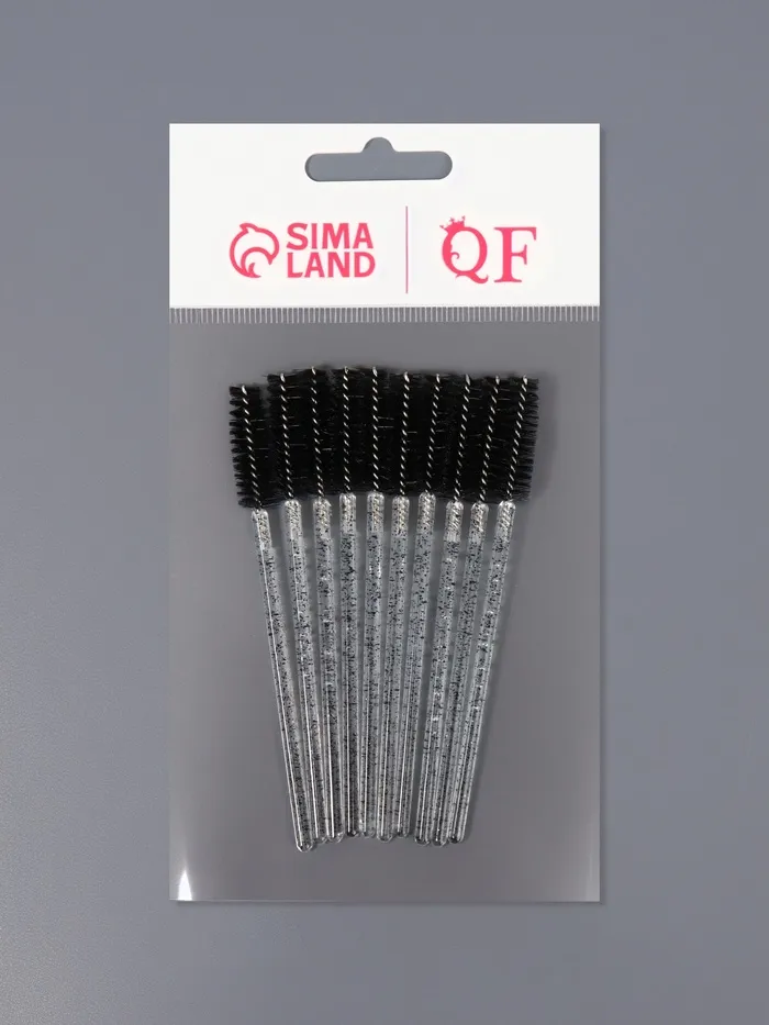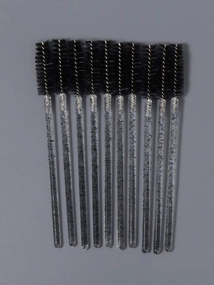 Щёточки для бровей и ресниц, набор - 10 шт., 10 см, чёрная, прозрачная