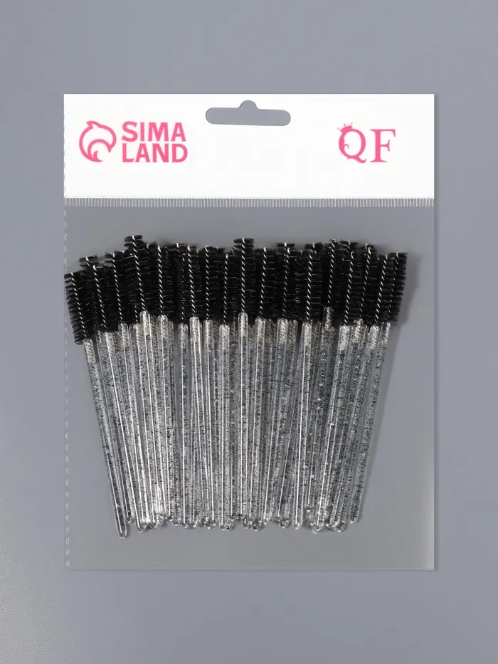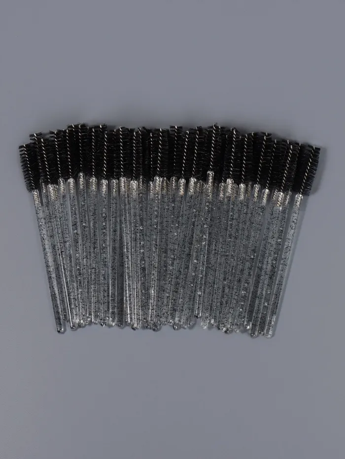 Щёточки для бровей и ресниц, набор - 50 шт., 9.5 см, чёрная, прозрачная