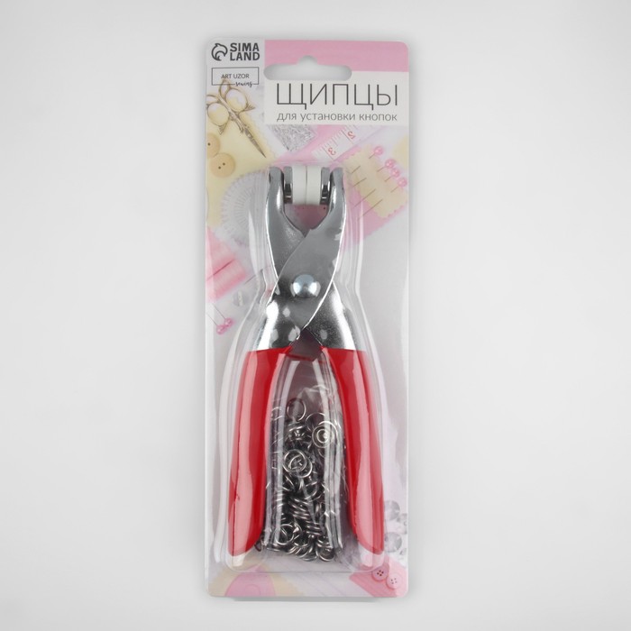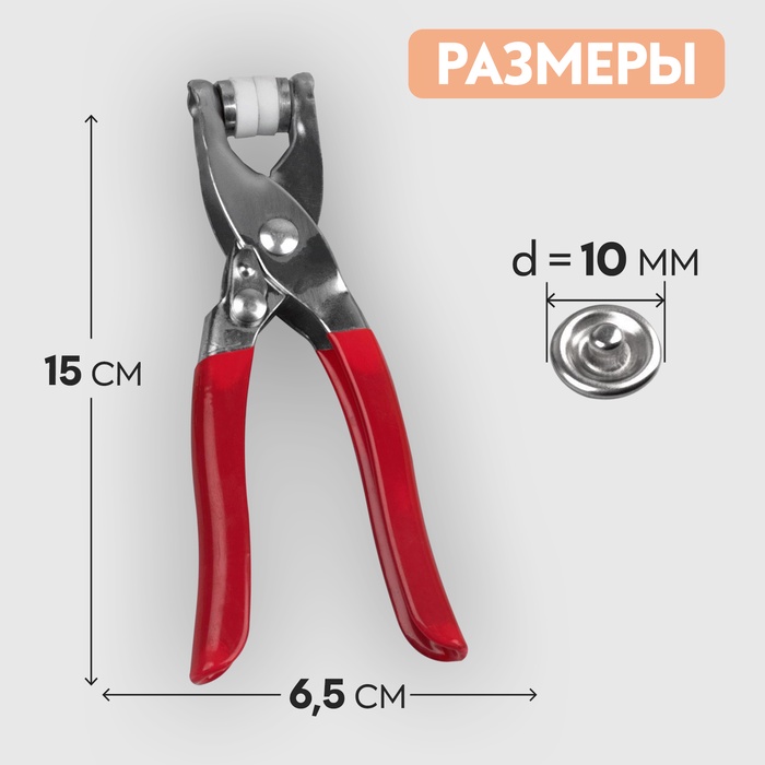 Щипцы для установки кнопок, с прорезиненными ручками, с кнопками 25 шт., 15×6.5 см, красные — Характеристики