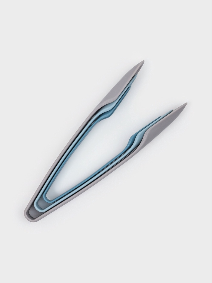 Разная длина — не случайность, а продуманное решение: короткие щипцы удобны для мелкой нарезки, средние — для сковороды, длинные — для глубокой посуды или гриля. Три цвета помогают выделить щипцы под разные задачи — например, синие для рыбы, серые для мяса, голубые для овощей. Такой подход упрощает готовку и снижает риск перекрёстного загрязнения.