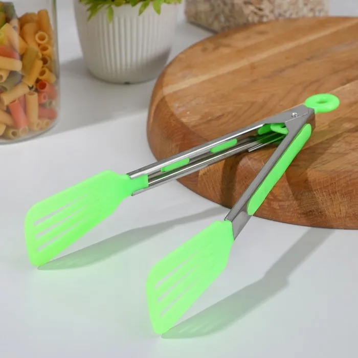 Щипцы кулинарные Доляна «Лопатка», 25×5 см, цвет зелёный