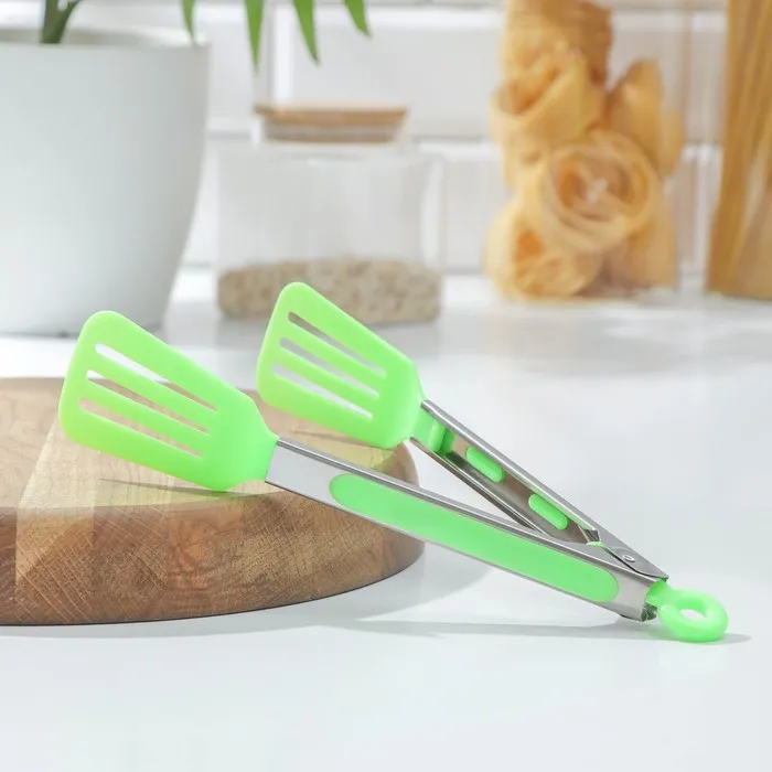 Щипцы кулинарные Доляна «Лопатка», 25×5 см, цвет зелёный — Характеристики