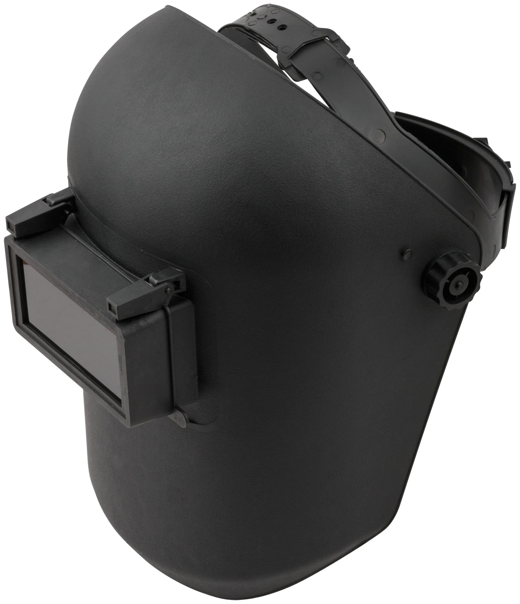 Изготовленный из прочного пластика, этот щиток оснащен регулируемым и фиксируемым наголовником, что позволяет адаптировать его под любой размер головы. Термостойкое затемненное стекло с степенью затемнения DIN 10 надежно защищает от яркого света и искр.