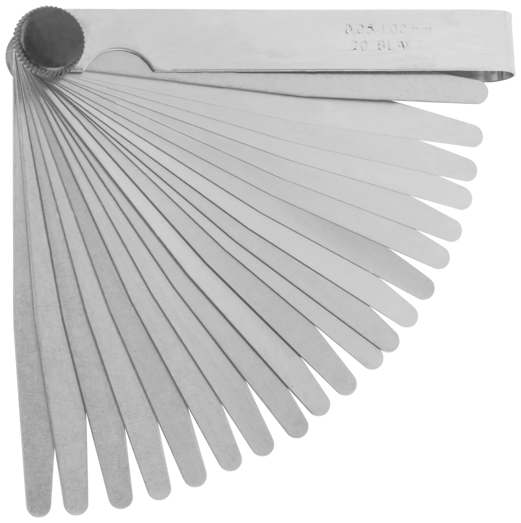 Набор включает 20 щупов, каждый из которых выполнен из высококачественной инструментальной стали, обеспечивающей долговечность и точность измерений. Щупы упакованы в блистер, что упрощает их хранение и транспортировку.