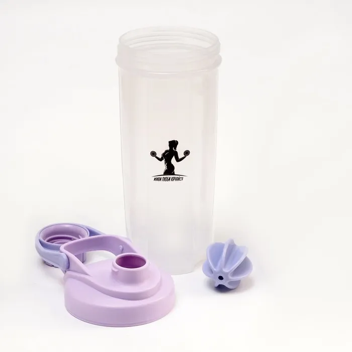 Шейкер сделан из безопасного пластика, поэтому подходит для воды, протеиновых и аминокислотных коктейлей, изотоников, соков, сывороток и т. д. Внутри ёмкости есть небольшой пластиковый шарик, который поможет вам разбить комочки смеси и получить однородную массу.
