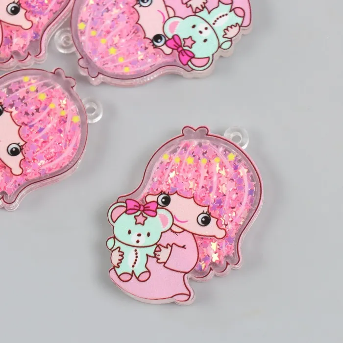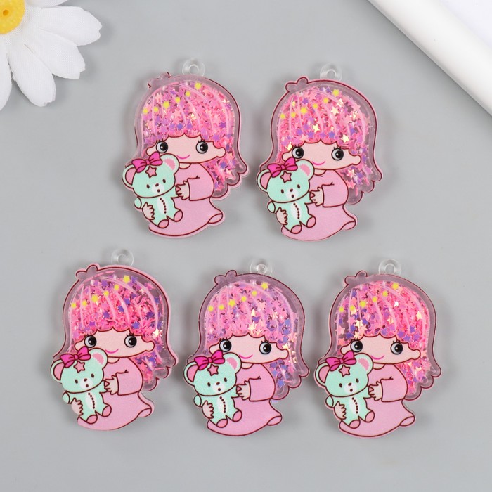 Шейкер для творчества акрил «Малышка с медвежонком», с глиттером, 0.5×3.4×5.1 см — Характеристики