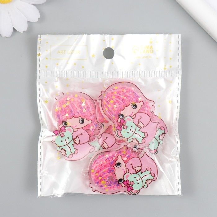 Шейкер для творчества акрил «Малышка с медвежонком», с глиттером, 0.5×3.4×5.1 см