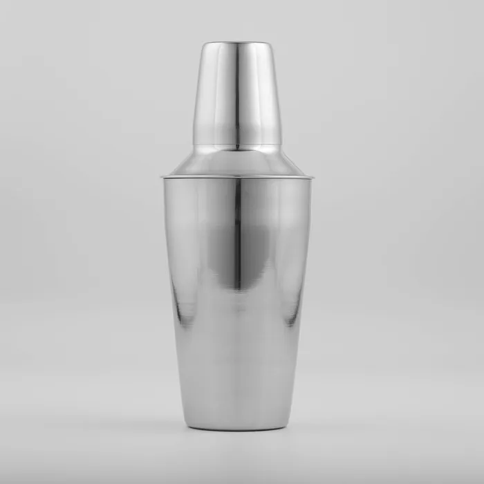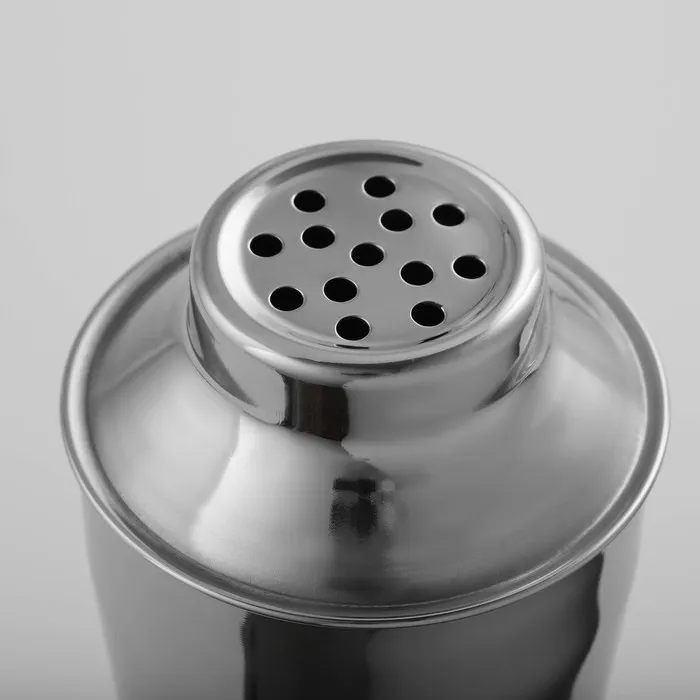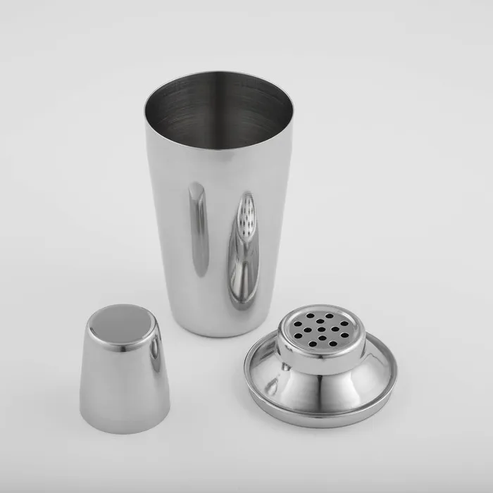 Шейкер изготовлен из качественной нержавеющей стали, состоит из стакана для смешивания, сита для льда и крышки — мерного стакана.