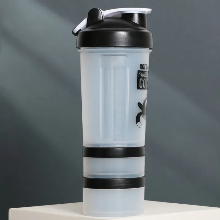 Шейкер спортивный для коктейлей и протеина, 500 мл, с чашей