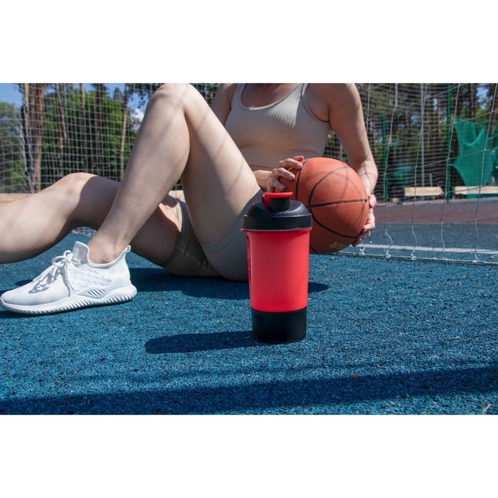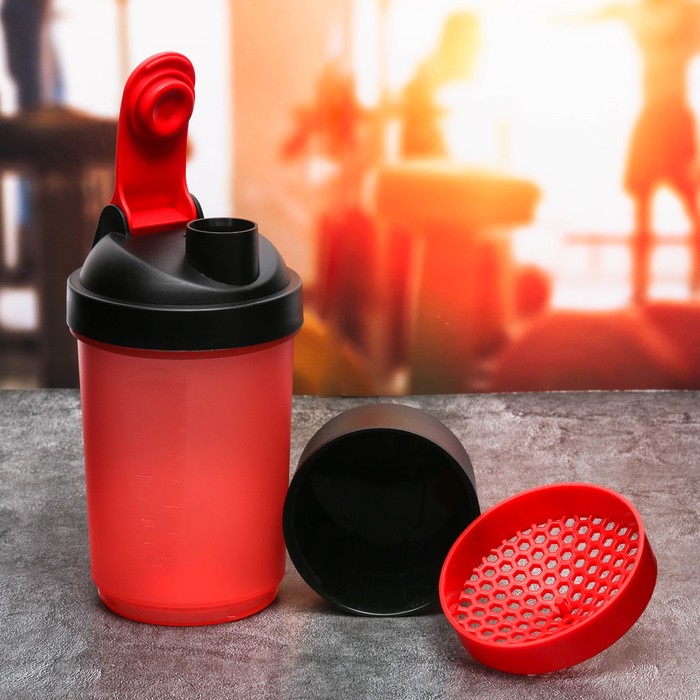 Шейкер спортивный для коктейлей и протеина, с чашей, красно-чёрный, 500 мл