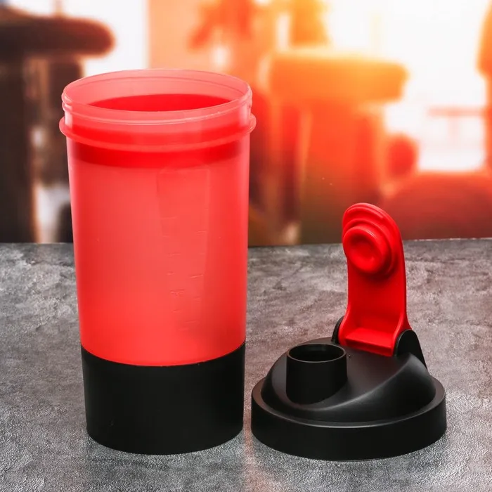 Шейкер спортивный для коктейлей и протеина, с чашей, красно-чёрный, 500 мл