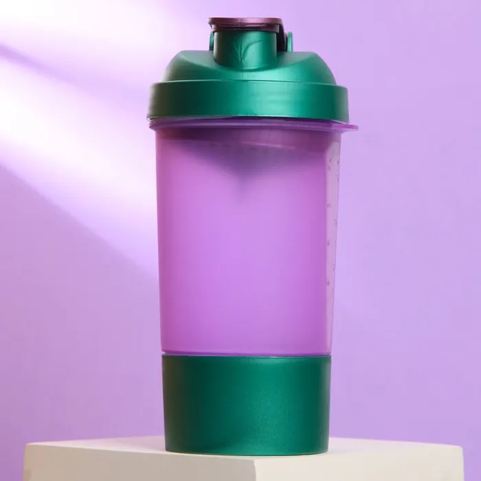 Шейкер спортивный с чашей под протеин, фиолетово-зелёный, 500 мл