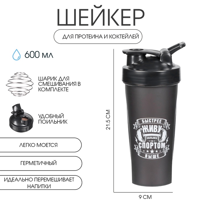 Шейкер спортивный «Живу спортом», 600 мл, 21.5×9 см — Характеристики