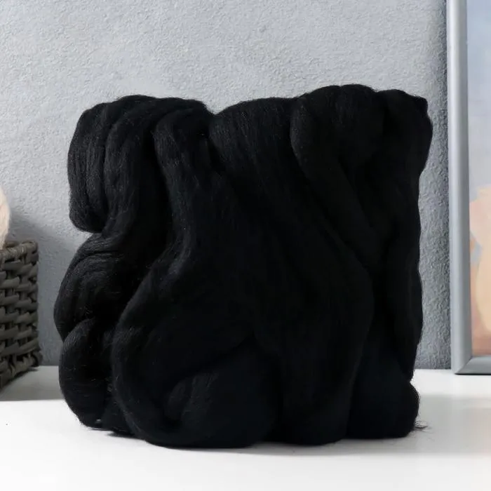 Шерсть для валяния 100% полутонкая шерсть 100гр (02 черный) — Характеристики