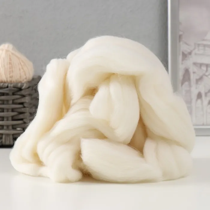 Валяние шерсти, как ремесло, зародилось ещё восемь тысяч лет назад, только для этого занятия было очень трудно найти шерсть животных, а цветную тем более. Но теперь вуаля! Представляем натуральную шерсть для валяния 100% полутонкая шерсть 50 гр (205, белый) от российского производителя.