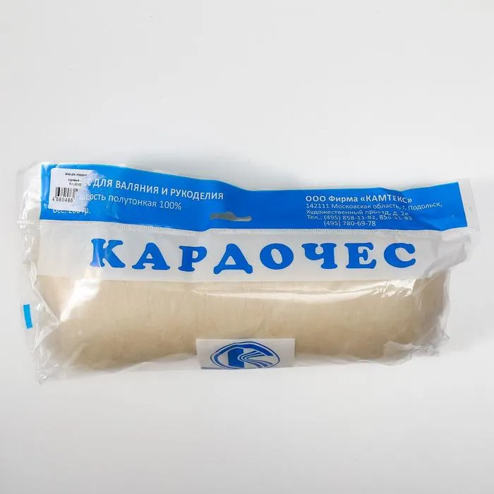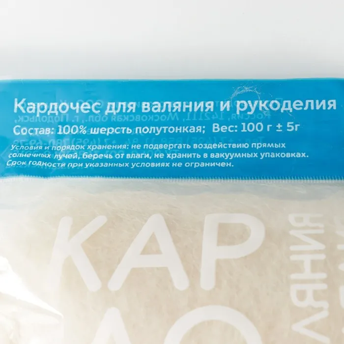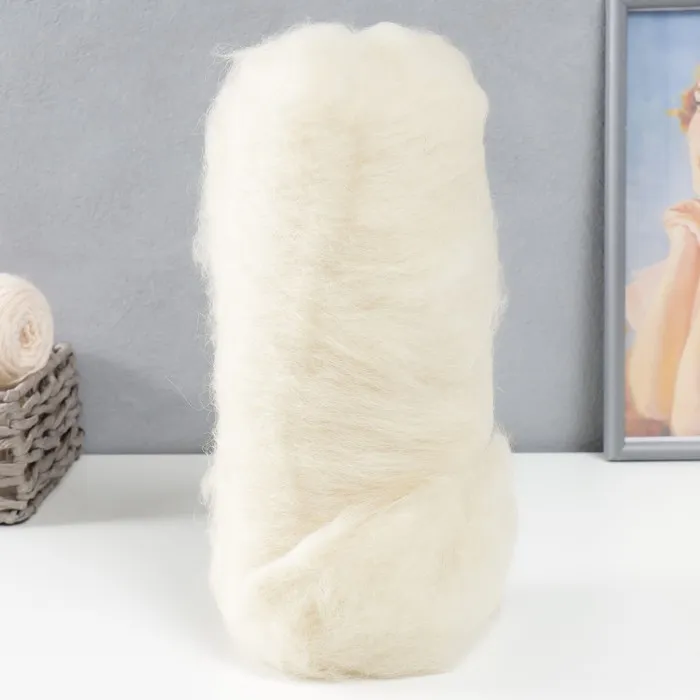 Шерсть для валяния "Кардочес" 100% полутонкая шерсть 100гр (001 суровый) — Характеристики