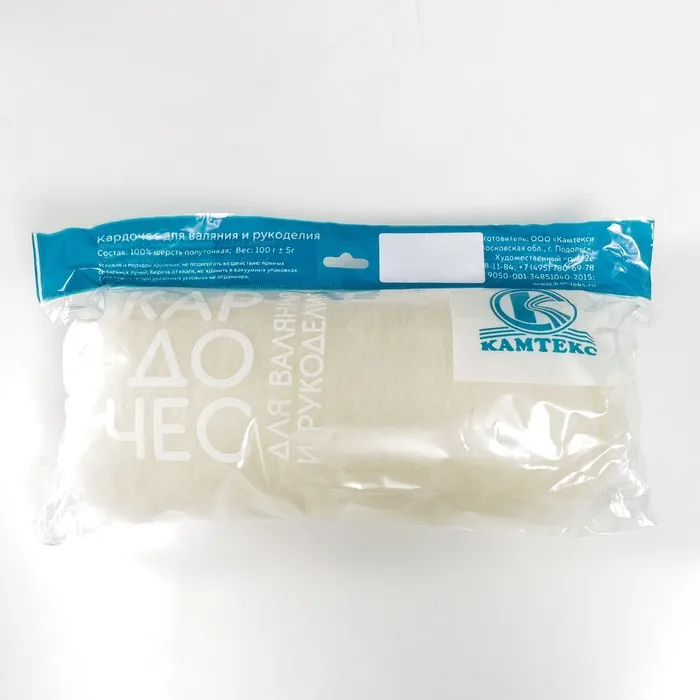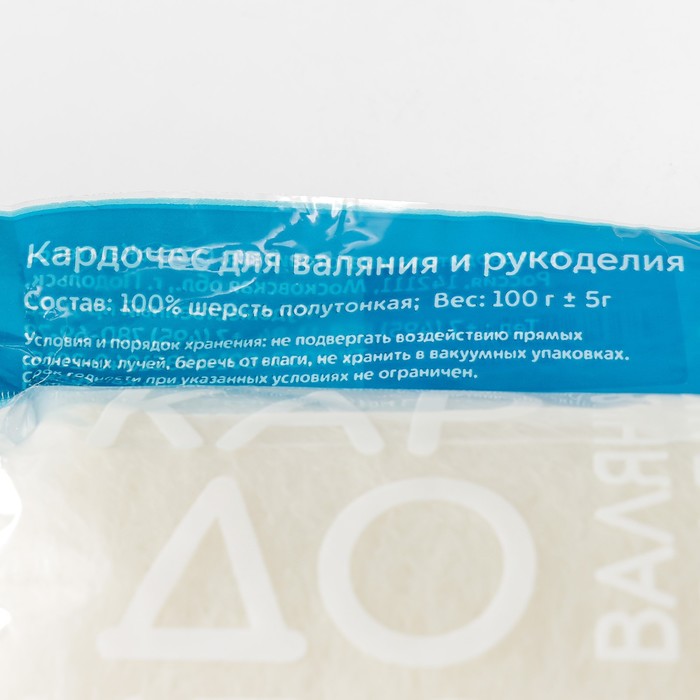 Шерсть для валяния "Кардочес" 100% полутонкая шерсть 100гр (205 белый) — Характеристики